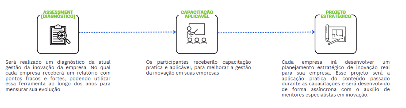 O Amcham Lab Nitro é o programa de capacitação em inovação da Amcham Brasil que é mais do que capacitação. O programa também vale como uma consultoria para sua empresa pois, durante os 4 meses do programa, além dos workshops de capacitação, cada empresa terá um projeto individual com o objetivo de desenvolver o “planejamento estratégico de inovação da empresa” com a ajuda de mentorias individuais, feita por especialistas em gestão da inovação.